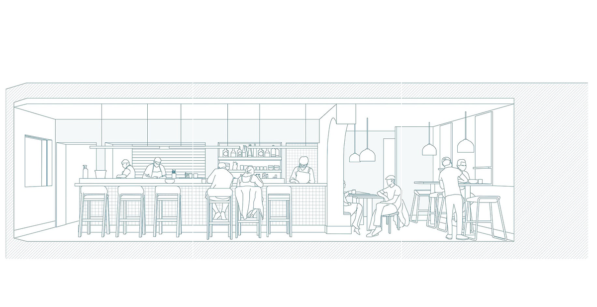 Dos chefs necesitaban desarrollar un proyecto en una cocina que se encuentra en el segundo piso de una galerÃa comercial. Si bien en la cocina se habilitó una pequeña barra para atender a los comensales, funcionaba principalmente como una gran cocina-delivery especializada en fusión oriental.