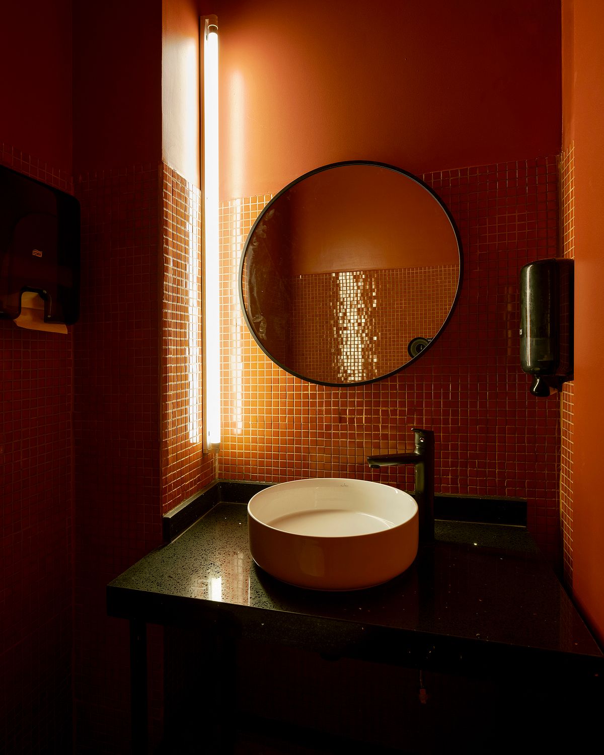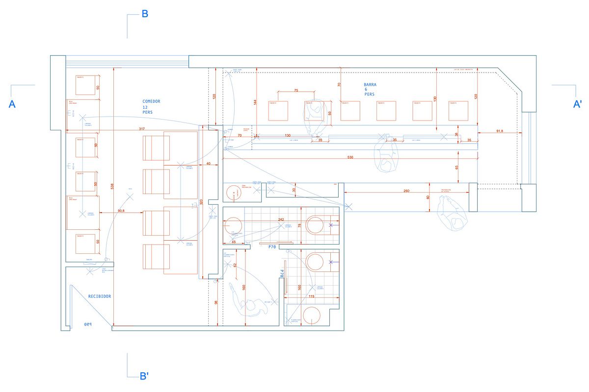 La cocina se mantuvo intacta y los locales contiguos se transformaron en las áreas de comedor. El local más cercano a la cocina se transformó en una larga barra que se abre a ésta y también a la zona de bar. Este espacio mantenÃa el espÃritu inicial de sentirse parte de la cocina.